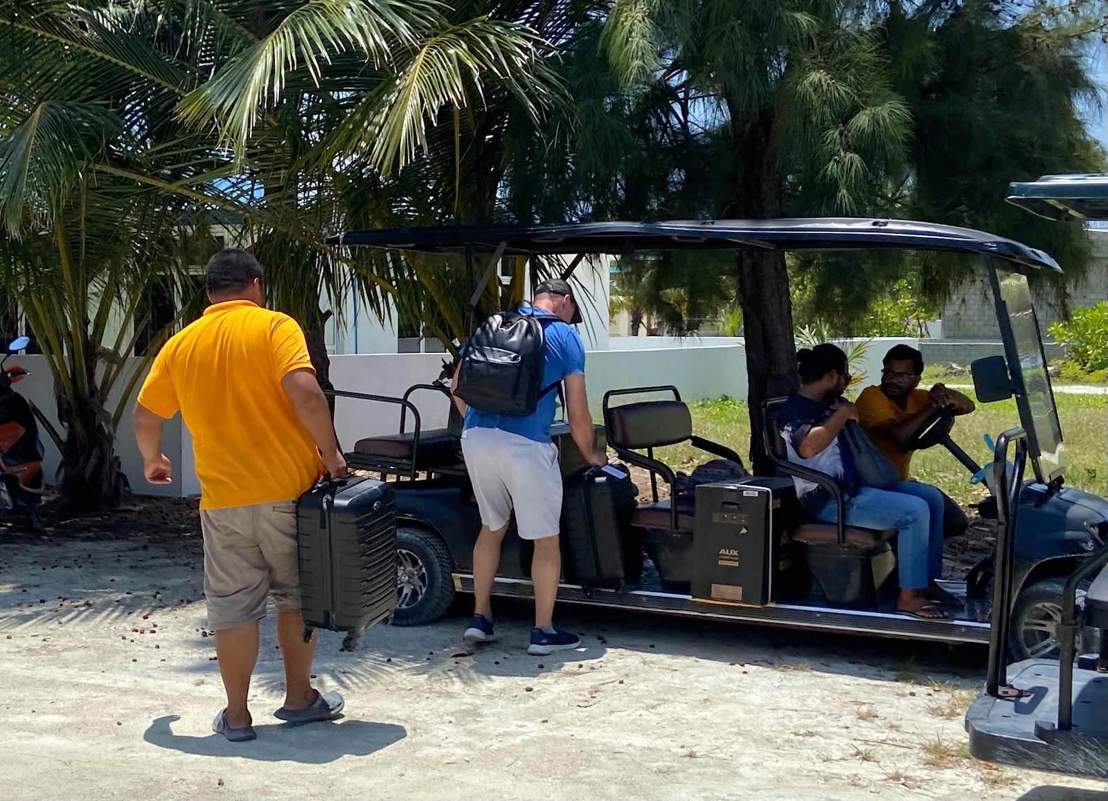 There are no vehicles on Huraa, as is the case with most islands in the Maldives, apart from Male and Hulhumale. Transportation is by golf cart. The guy in the orange shirt is Rafael, who works for the hotel where we are staying. He grew up in Montreal! What a small world.