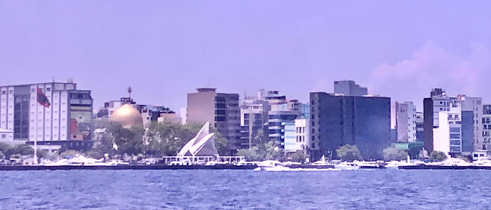 The view of Male as we sped away in our Seashine speedboat to the island of Huraa.