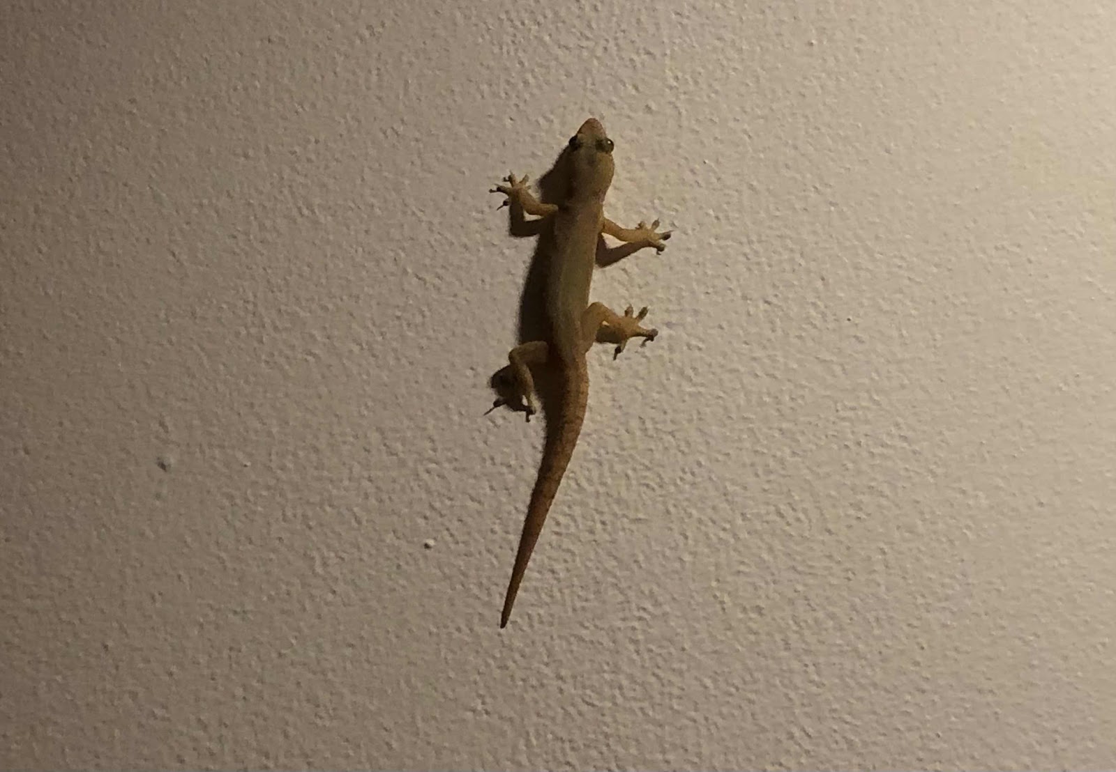 And for a little night cap… This little fella is sharing the room with us tonight. Many years ago, we had one in our room in Zanzibar. In that case, brave husband came to the rescue by killing it with a broom. But that didn’t go over well and has been talked about ever since! Tonight, there were screams of “Get it out, get it out!!” With no broom in the room, and given internet advice not to grab it by the tail (they drop their tail when grabbed), there was no immediate resolution to the problem. Hence, the decision to let it share the room.