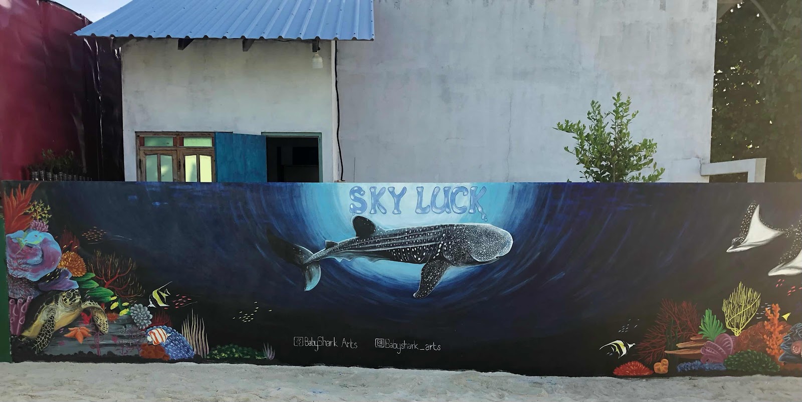 A mural adorns one of the streets in Huraa. It features a whale shark, which we are hoping to get to see at our next resort in South Ari Atoll.