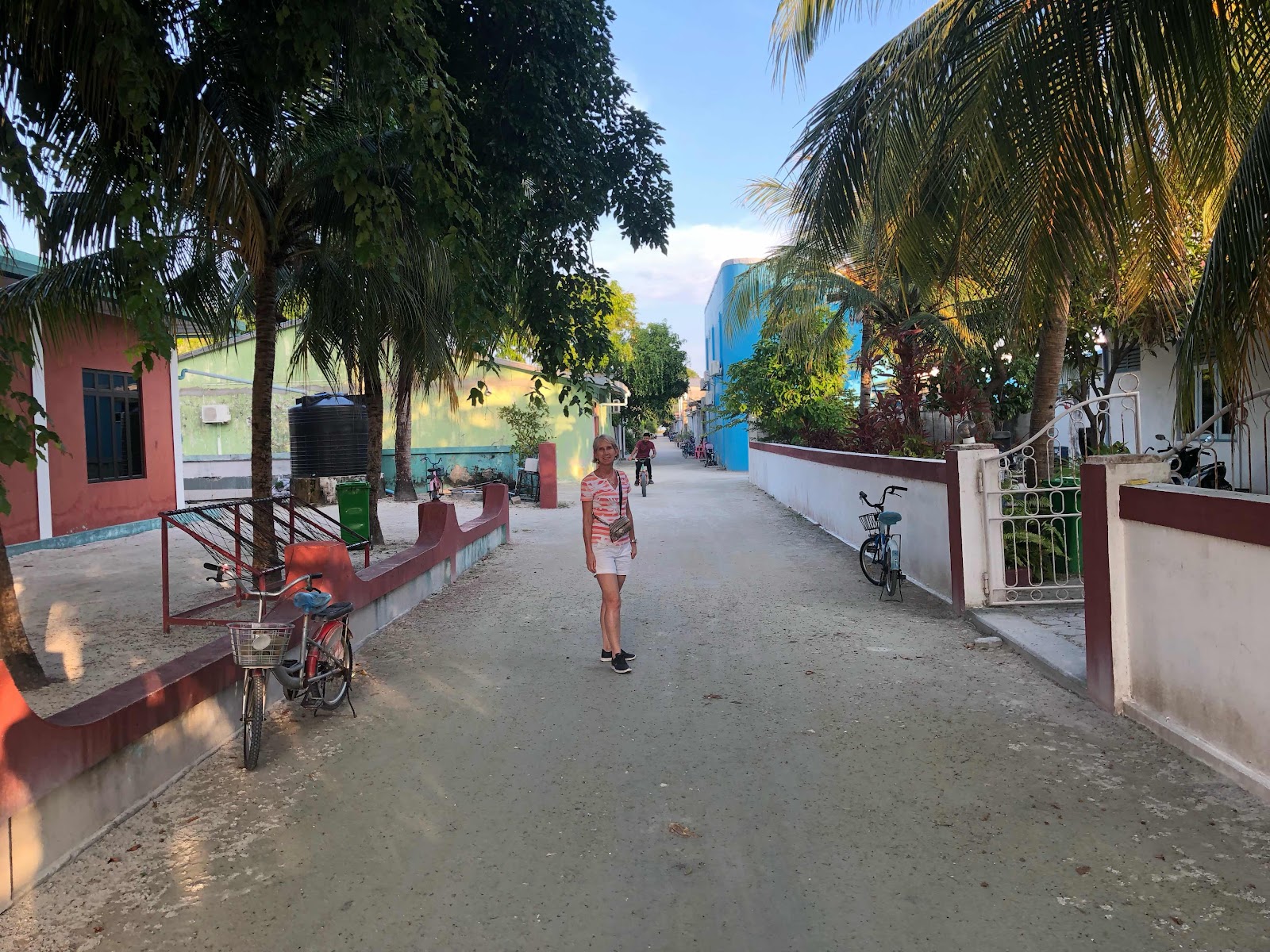 Pam and a typical Huraa street, late in the afternoon.