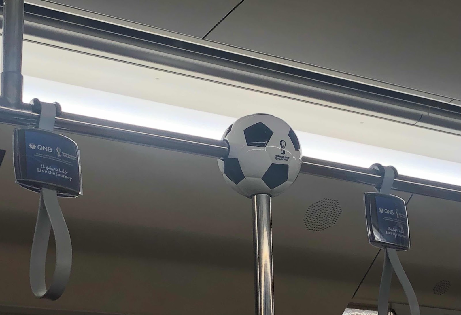 The hand-loops on the metro cars still show signs of the a World Cup event.