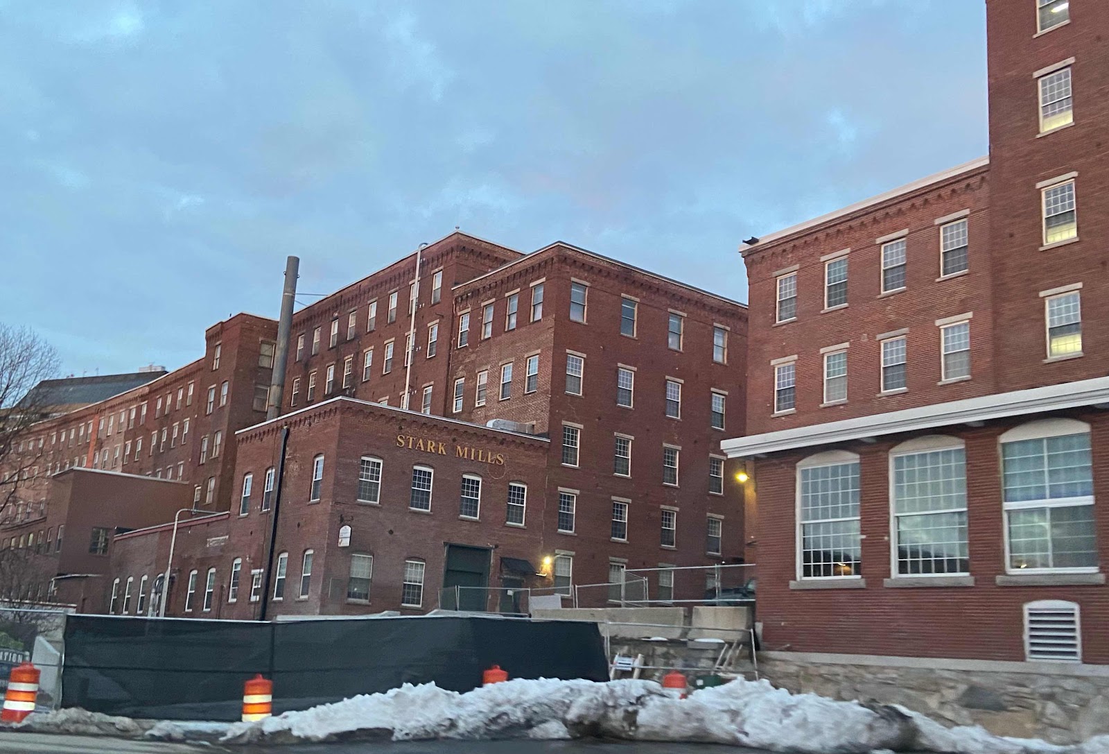 You’re probably going to wonder why there so many pictures of large brick buildings here! Manchester was a huge textile, cotton-mill, foundry and manufacturing centre from the early 1800s and until the 1960s. Both sides of the Merrimack River are lined with massive former factory buildings, which have been carefully and beautifully restored for modern use, from university education to apartment lofts, offices, hotels and self-storage facilities. A brilliant and beautiful repurposing of what — in their day — may have been seen as unattractive and perhaps oppressive structures. Driving among these buildings is truly an awesome experience. So we share a few of them with you below…